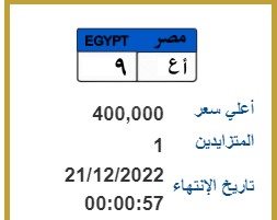 ويمكن للمشترك في المزاد رفع قيمة المزايدة على الحروف والأرقام المطروحة للبيع من خلال الموقع الإلكتروني، مع الأخذ بعين الاعتبار ألا تقل قيمة مزايدته عن الحد الأدنى للمزايدة المدون فى شاشة المزايدة.