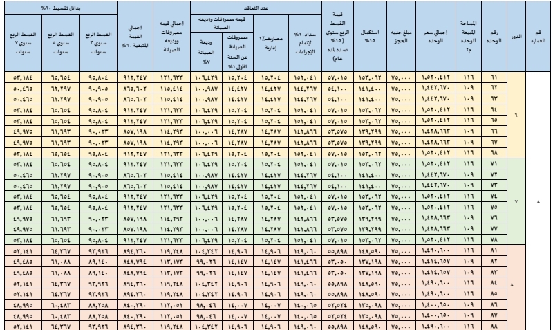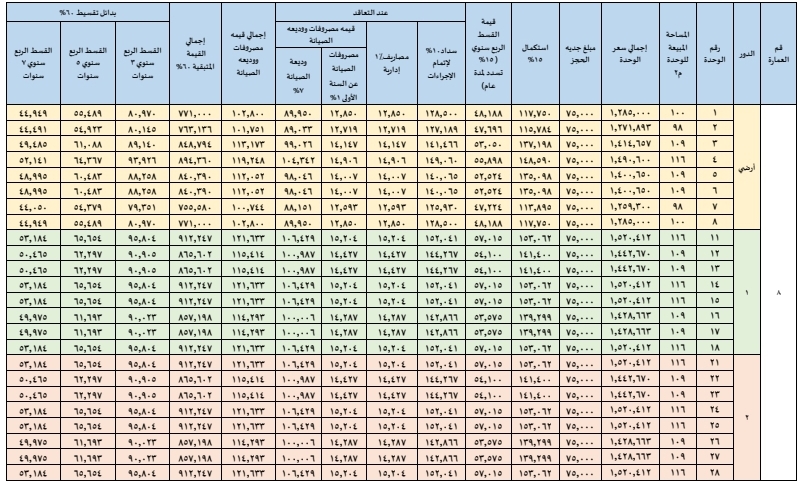 تتراوح أسعار الشقق بالعقار رقم ٨ من 1،259،300 جنيه مصري إلى 1،520،412 جنيه مصري والاسعار كاملة كالتالي: