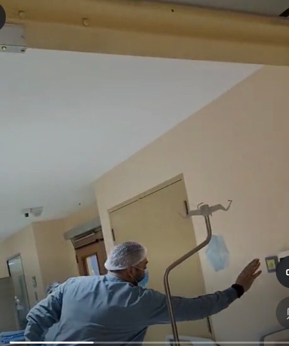 وظهر الفنان رامي عياش وهو يرتدي “الزي المناسب” أثناء تواجده في المستشفي، وعلق قائلا:" بخير وسلامة الحمدلله.