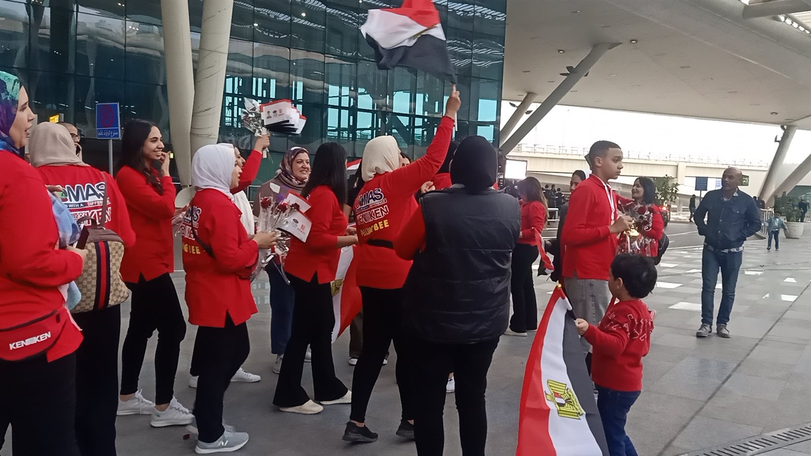 بالورود والأعلام استقبال الطلاب العباقرة الفائزين عالميا بمطار القاهرة (فيديو وصور)