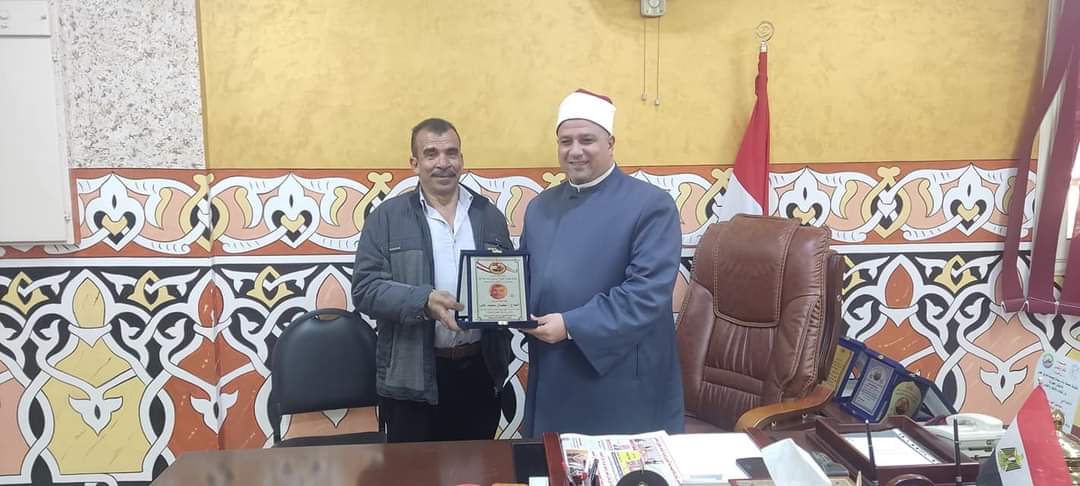 وكيل أوقاف الإسماعيلية يهدي عاملا درعا تقديرا لجهوده في خدمة بيوت الله (صور)