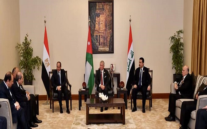إن انعقاد قمتنا اليوم، يحمل معه دلالةً سياسية مهمة، على اعتزامنا مواصلة توفير كافة سبل الدعم للعراق الشقيق ورغبةً صادقة، في الانتقال إلى مرحلة جديدة من الشراكة من خلال تعزيز العمل في أطر التعاون الثنائي، أو المتعدد، كآلية التعاون الثلاثي بين مصر والعراق والأردن، أو غيرها.