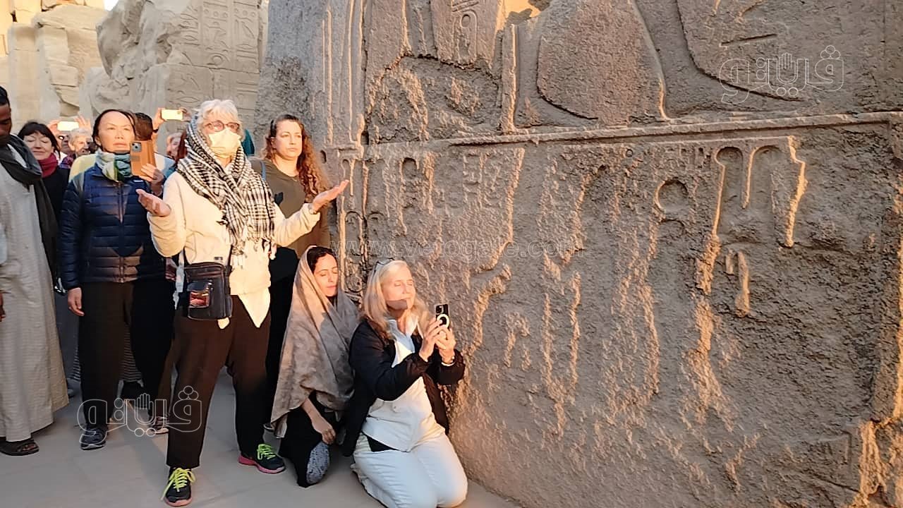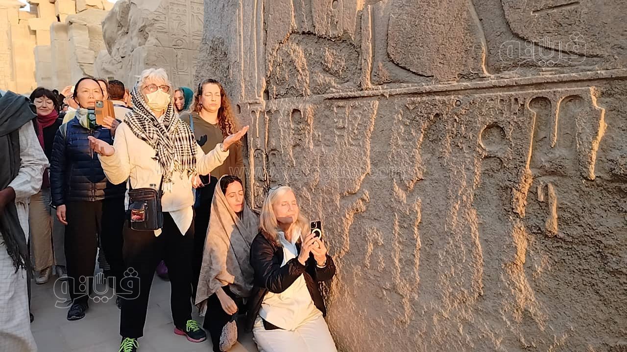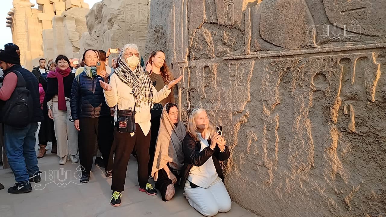 تعامد الشمس، لحظة رصد السائحين للظاهرة الفريدة على معابد الكرنك (فيديو وصور)