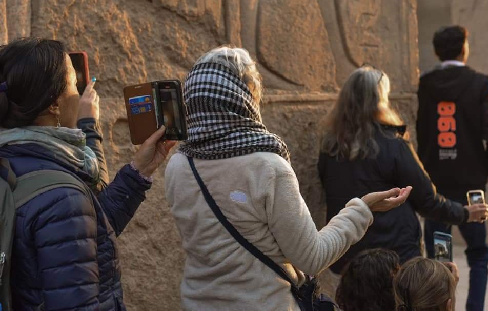 فيتو ترصد احتفالات السائحين بتعامد الشمس على معابد الكرنك