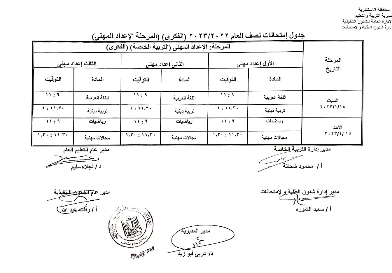 جداول امتحانات نصف العام بمدارس التربية الخاصة في الإسكندرية
