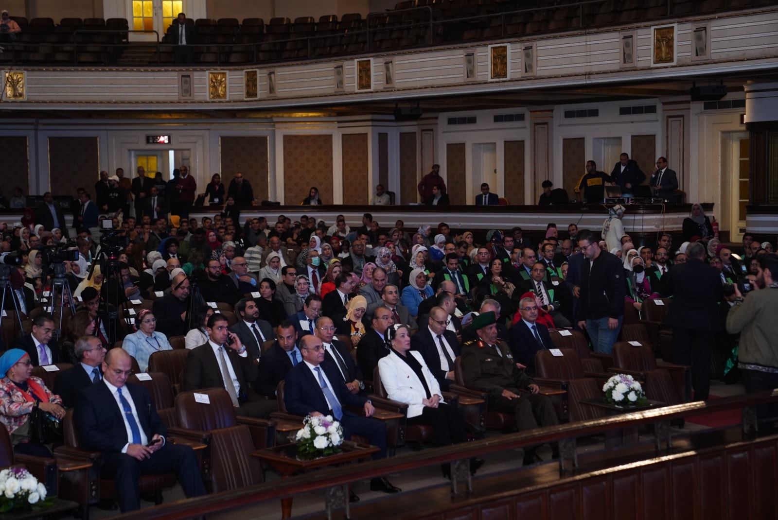 وقد شهد الحفل التكريم عدد من الوزراء منهم وزيرة البيئة و140 شخصية من علماء الجامعة ومفكريها وباحثيها الحاصلين على جوائز الدولة والجامعة بأنواعها في مختلف المجالات العلمية عن عامي 2020 و2021، بهدف تشجيع وتكريم العلماء والباحثين المتميزين، تقديرًا لعطائهم وجهودهم في مختلف المجالات العلمية والإنسانية، وما حققوه من إنجازات علمية وبحثية في المحافل المحلية والدولية، وتأكيدًا لمكانة العلم والعلماء في الدولة المصرية، وبحضور الدكتورة ياسمين فؤاد وزيرة البيئة المستشار عمر مروان وزير العدل والدكتور محمد معيط وزير المالية وعدد كبير من كبار الشخصيات العامة ورجال الدولة، ونواب رئيس الجامعة، وعمداء الكليات، وأعضاء هيئة التدريس، والطلاب، وذلك بقاعة الاحتفالات الكبرى بالجامعة.