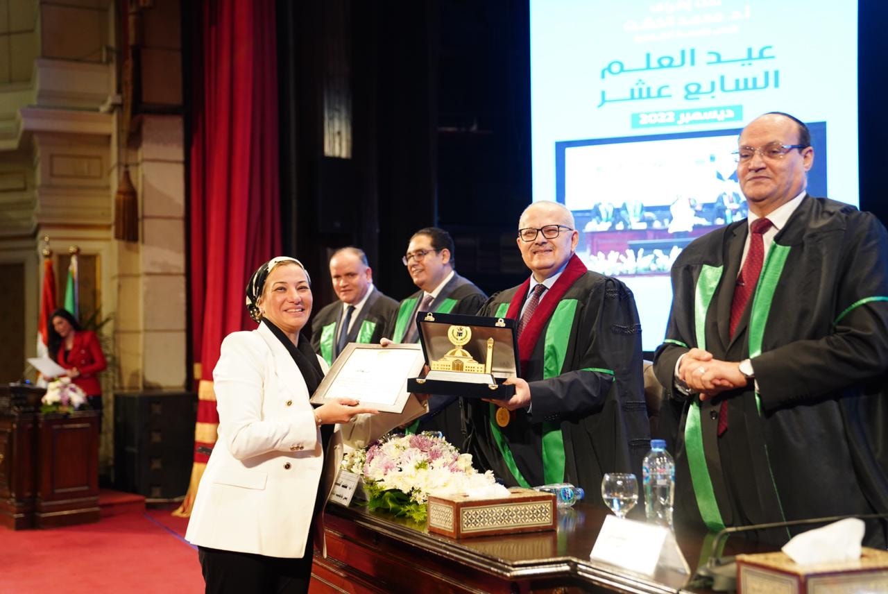 جامعة القاهرة تكرم وزيرة البيئة خلال الاحتفال بيوم العلم (صور)