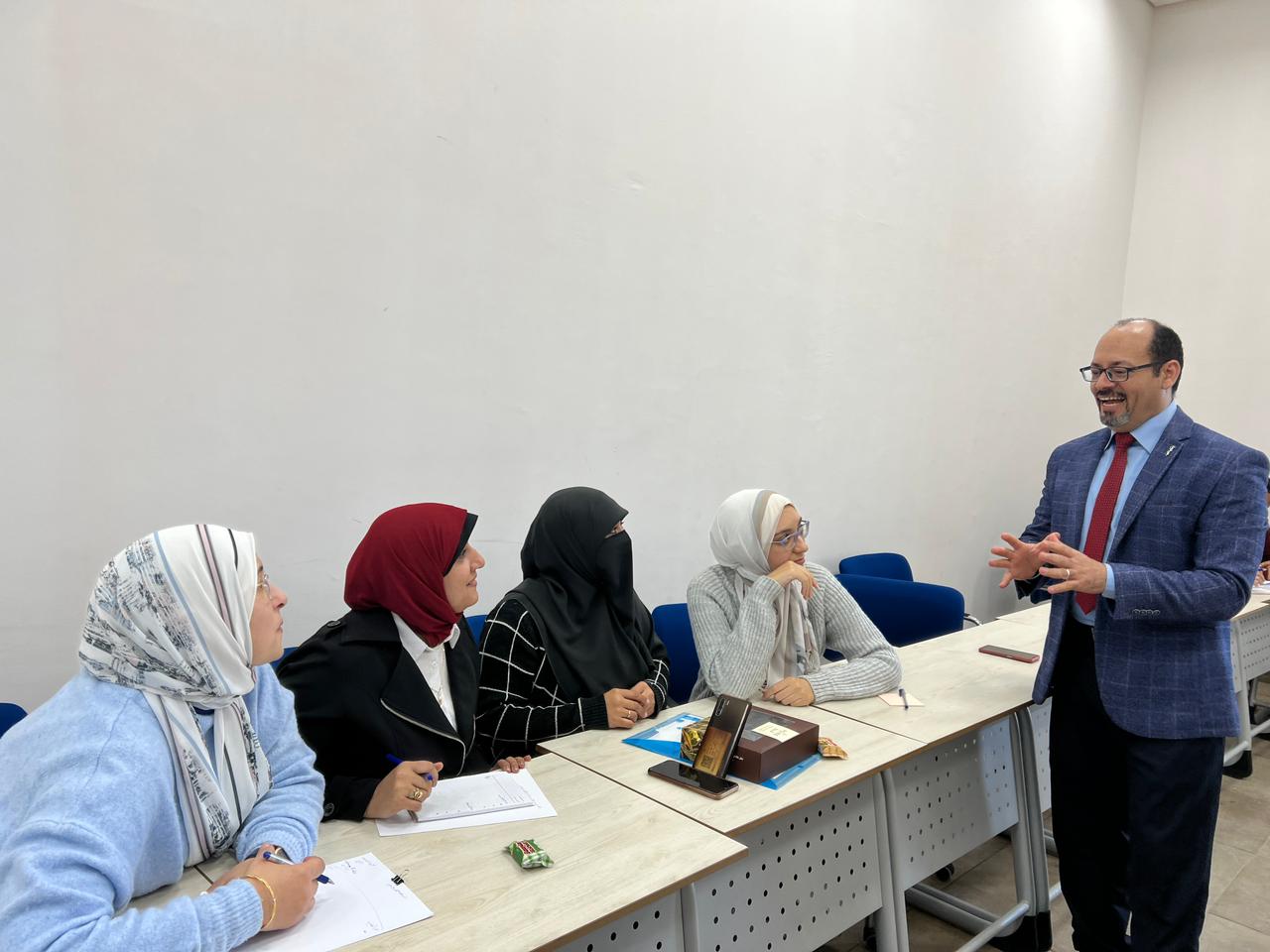 وبحضور الدكتور محمد عادل معيد بقسم الميكروبيولوجي - كلية العلوم جامعة عين شمس - منسق التدريب - مركز التدريب والتطوير جامعة عين شمس، حيث تم إطلاق مشروع البرنامج التدريبي اليوم الاثنين الموافق 12-12-2022 م بدأ بدورة (Competitive Research Proposals)لأعضاء هيئة التدريس وبدورة (Interactive Learning Strategies in Blended and Hybrid Courses) لاأعضاء الهيئة المعاونة.