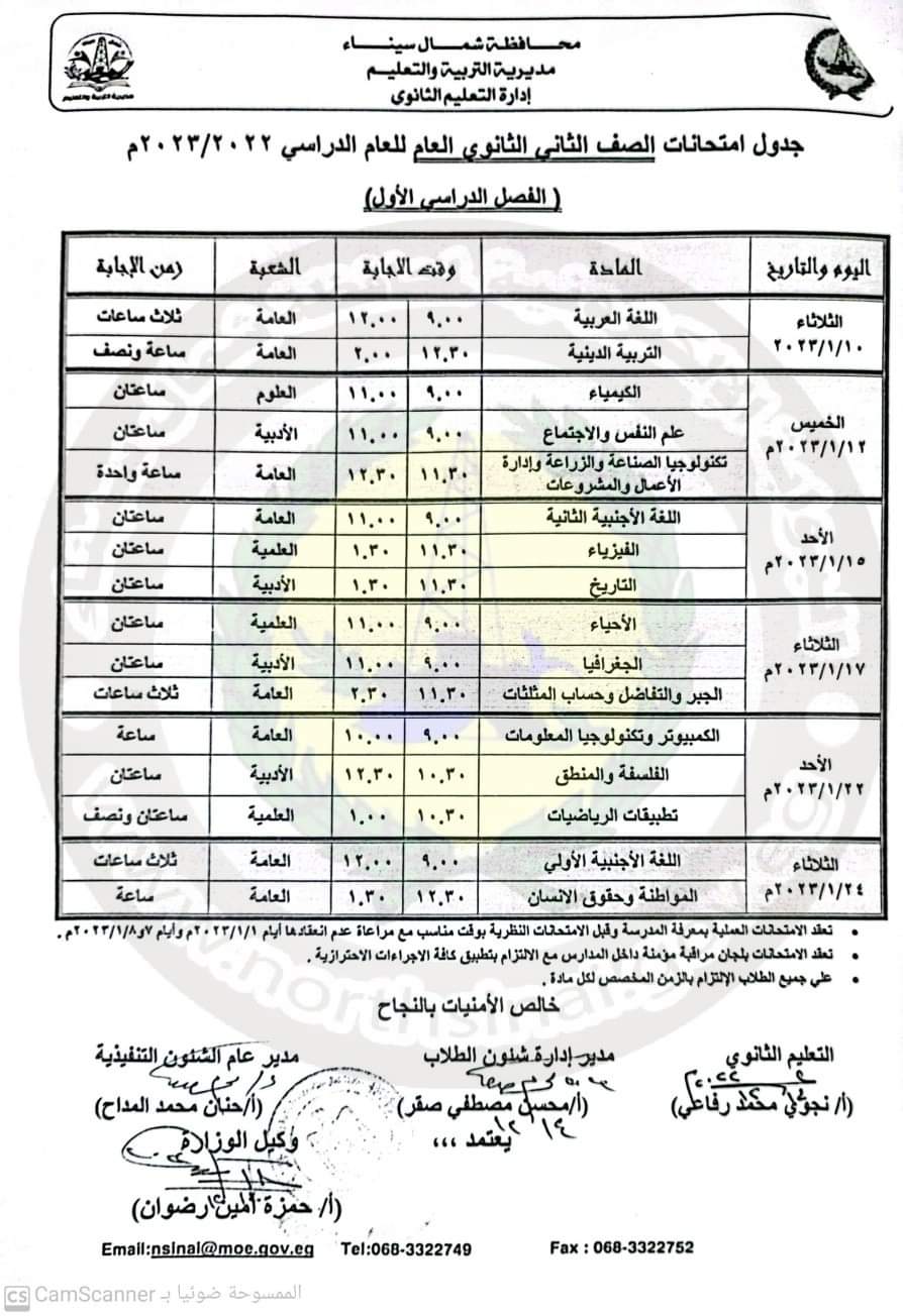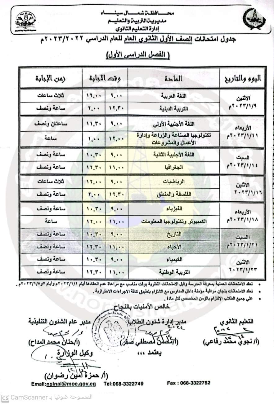 جداول امتحانات الفصل الدراسى الأول للمرحلة الثانوية بشمال سيناء