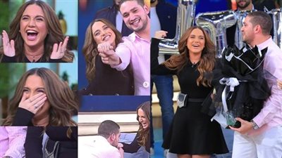 وقبل أن تستكمل حديثها فوجئت بـ خطيبها وهو يخرج بين الجمهور ويعرض عليها الزواج.