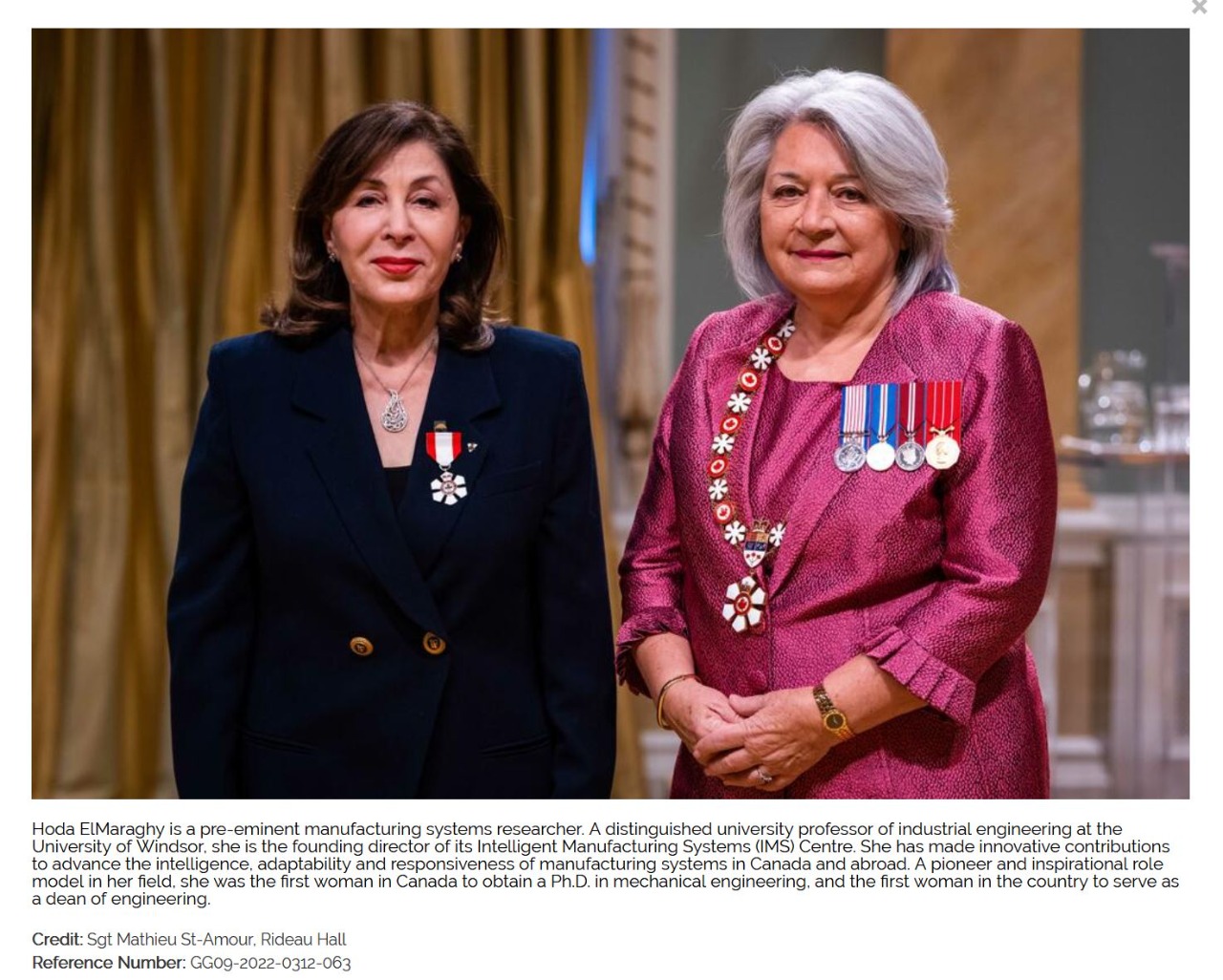 حصلت الدكتورة هدى المراغي، العميد السابق لكلية الهندسة بجامعة وندسور بكندا وإحدى رائدات مؤتمرات "مصر تستطيع"، على "وسام كندا" أعلى درجات التكريم الكندية من قبل حاكم كندا العام وهو الوسام الذي يمنح للشخصيات التي قدمت مساهمات غير عادية بالمجتمع الكندي في مختلف التخصصات.