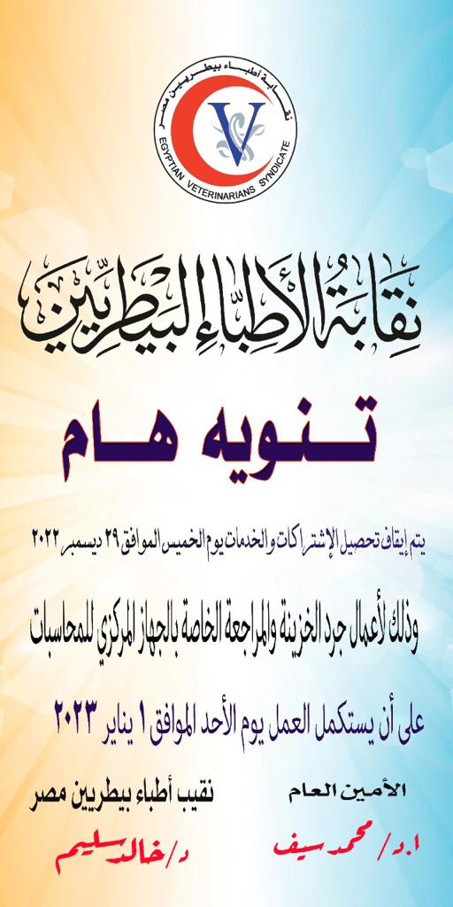 نقابة البيطريين تقرر وقف تحصيل الاشتراكات والخدمات يوم 29 ديسمبر