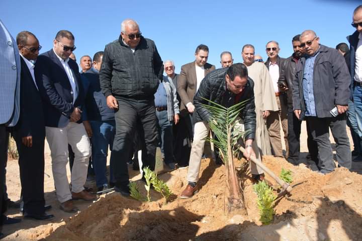حيثُ تفقد الوفد مزرعة النخيل التي تُقام على مساحة ٨٠٠ فدان وتضم زراعات النخيل وبعض الزراعات التحميلية الأخرى، مُشيدين باعتماد المزرعة على ري التنقيط حفاظًا على المخزون الجوفي واستخدام الطاقة الشمسية كبديل مُستدام للطاقة، والتوسع في زراعات النخيل بالمحافظة ضمن مبادرة رئيس الجمهورية لزراعة ٢.٥ مليون نخلة.