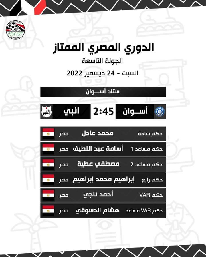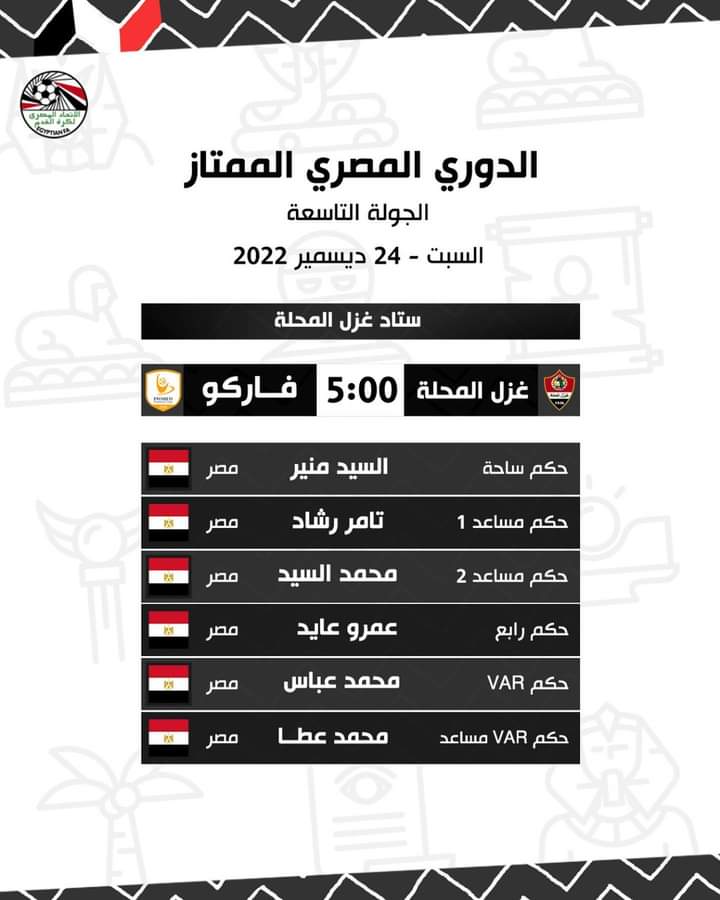 وجاء اختيار أطقم حكام مواجهات الغد بالدوري الممتاز على النحو التالي: