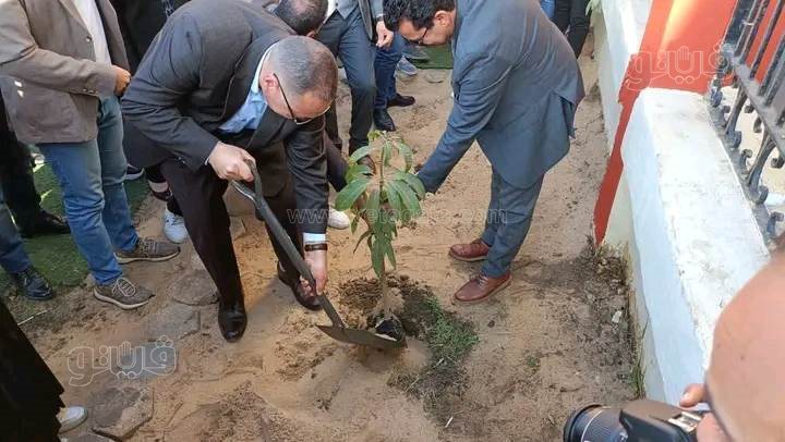 وقام الوزير بزراعة الاشجار المثمرة بمدخل مركز الشباب ضمن مبادرة أندية التطوع بمديرية الشباب والرياضة بالمحافظة.