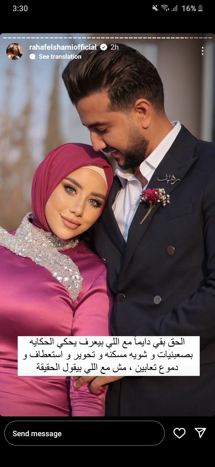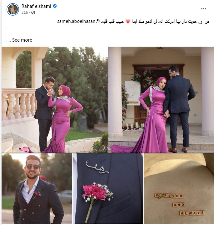 وقالت البلوجر رهف الشامي عبر حسابها بإنستجرام قائلة: "الحقيقة أن أنا وهو كنا قرينا فاتحتنا من 10 سنوات، لما أبويا الله يرحمه كان عايش، شافني وحبني واتقدم لي من 10 سنين"
