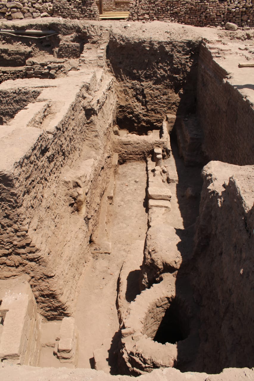 وأوضح الدكتور مصطفى وزيري الأمين العام للمجلس الأعلى للآثار، أن أعمال الحفائر تمت في المنطقة الواقعة خلف معبد إسنا، حيث عثرت البعثة على بقايا مقصورة من الحجر الرملي تعتبر امتدادات للمعبد في العصور الأقدم، بالإضافة إلى بقايا مبنى دائري الشكل من الطوب الأحمر المجوف، وبقايا مبنى آخر أساساته مصنوعة من الحجر وجدرانه من الطوب اللبن، وبه بقايا عناصر معمارية من أعمدة صغيرة تشكل بوابة أو مدخل، ومجموعة من الأواني الفخارية غير المكتملة، وأجزاء من القنابل اليدوية الفخارية، ومجموعة من الغليون غير المكتملة ذات أشكال ومقاسات وخامات مختلفة.