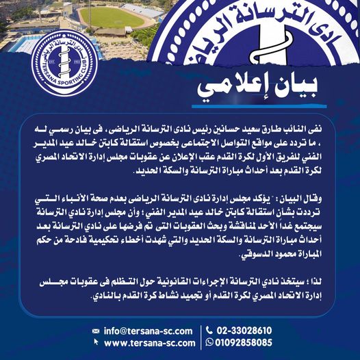 وأصدر نادي الترسانة بيانا، اليوم السبت، جاء نصه كالتالي: