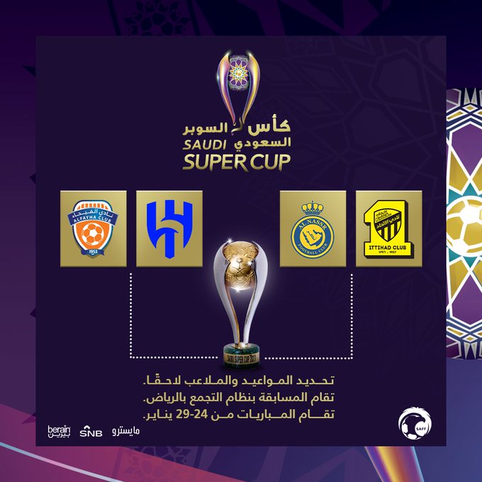 كأس السوبر السعودي، الاتحاد يصطدم مع النصر والهلال ضد الفيحاء (صور)