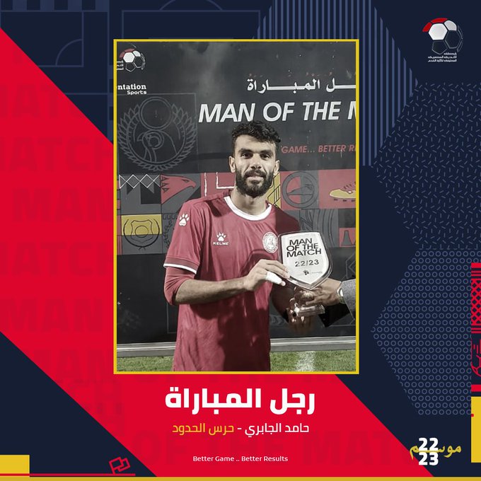 حصد حامد الجابري، لاعب فريق حرس الحدود، جائزة أفضل لاعب في مباراة فريقه أمام البنك الأهلي، التي أقيمت مساء اليوم السبت، على ملعب المكس بالإسكندرية، في الجولة التاسعة من الدوري الممتاز.