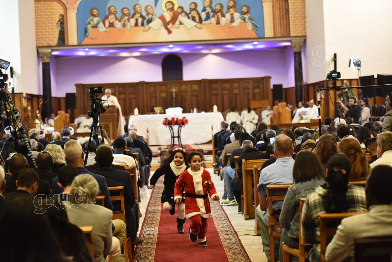 بينما رنم كورال الكاتدرائية ترنيمة "هذا هو اليوم السعيد" التي تحتفي بميلاد المسيح وترنم كجزء من طقوس قداس عيد الميلاد المجيد.