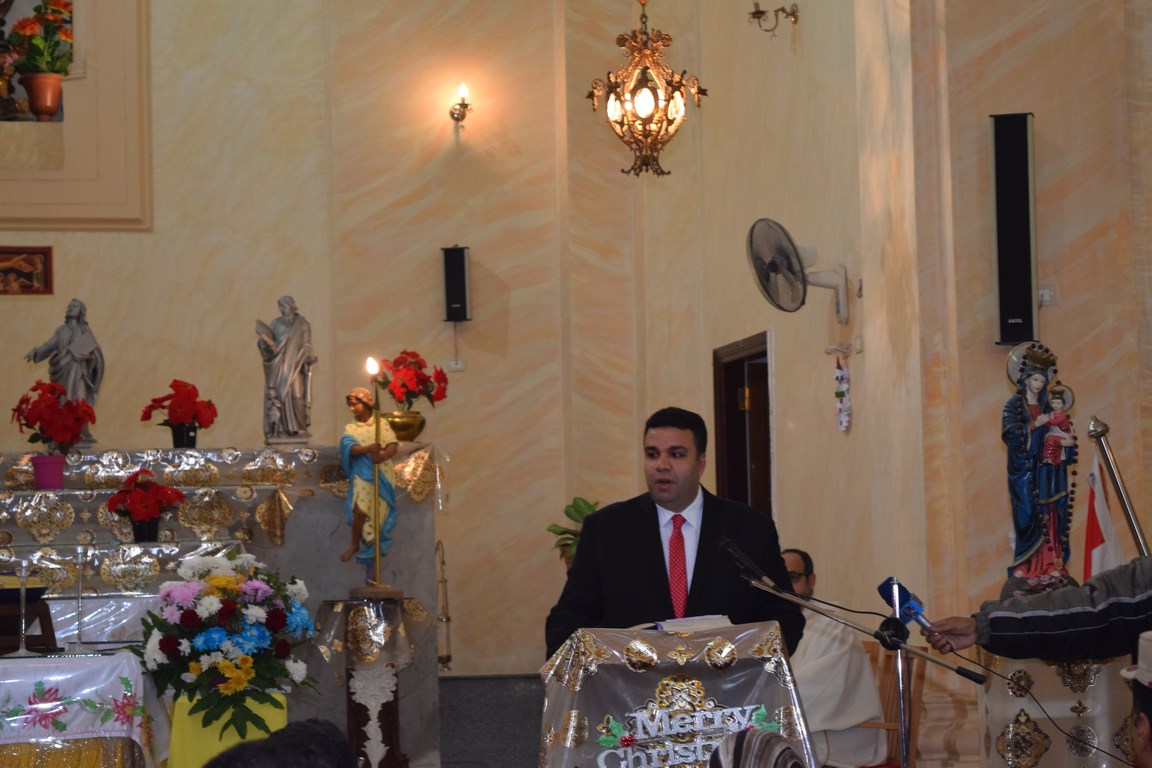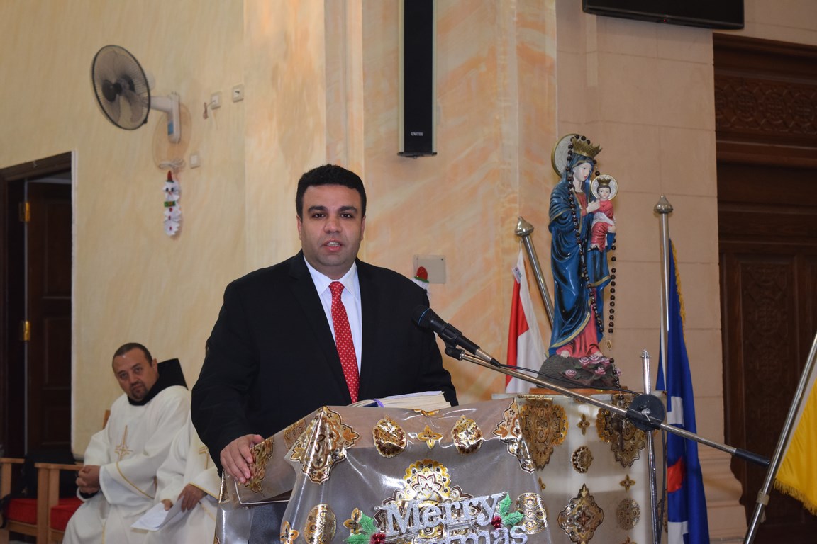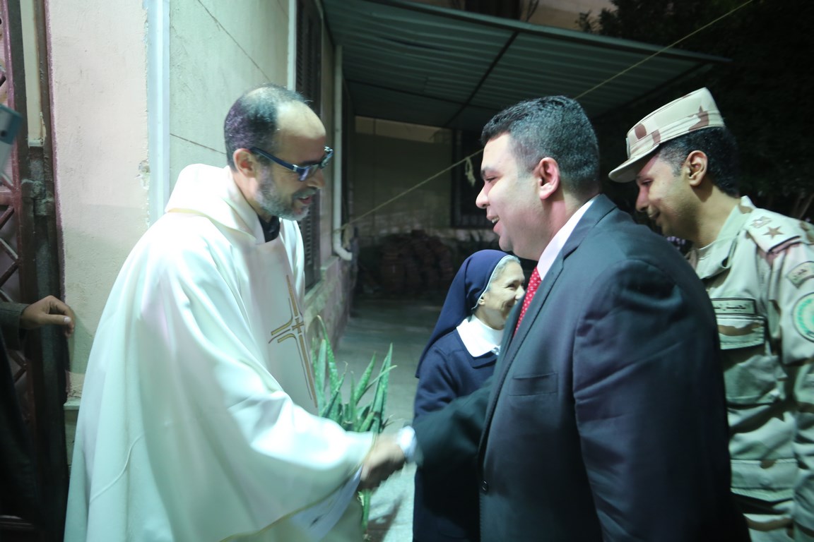 نائب المحافظ يقدم التهنئة للإخوة الأقباط بكنيسة الآباء الفرنسيسكان بالسويس (صور)