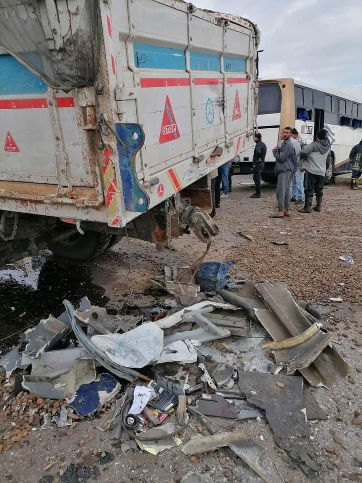 ونتج عن الحادث تعطل الحركة المرورية بالطريق وخرج الأهالي ومستقلو السيارات لمحاولة إنقاذ المصابين.