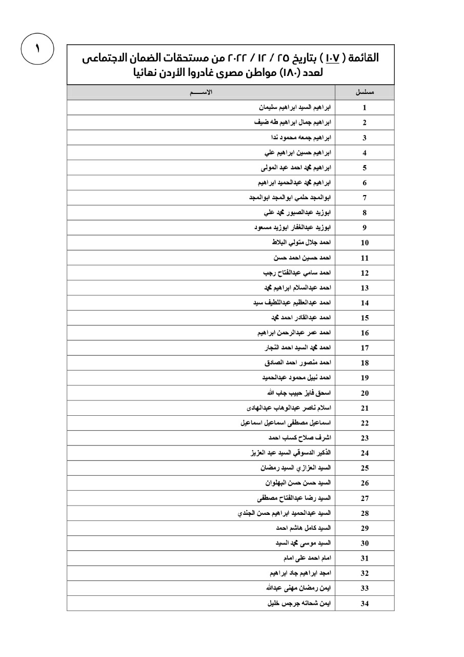 وذلك استكمالا لما تم تحويله سابقا- عملية تحويل القائمة الـ 107 من مستحقات الضمان الاجتماعي لنحو 180 عامل مصري لدى" المؤسسة" غادروا عمان نهائيا.