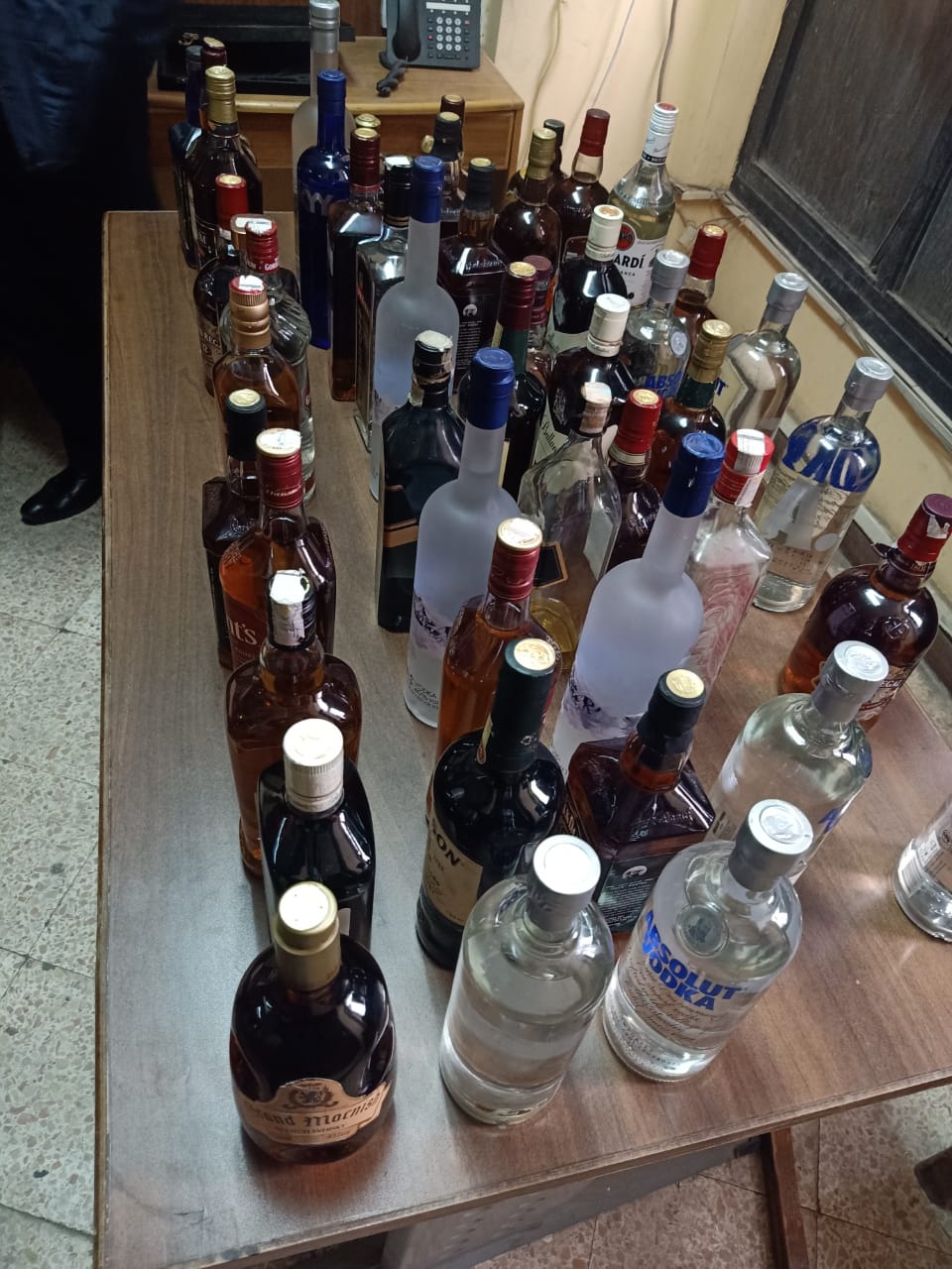 وتم استصدار إذن النيابة فى هذا الشأن لكل منهما وتشكيل لجنة جمركية برئاسة محمد المغربى مدير ادارة المكافحة ومنتصر محمد محمدين وإسماعيل أحمد على مأمور الجمرك بالتنسيق مع مباحث الضرائب والرسوم برئاسة العميد محمد عبدالعظيم مدير الادارة وقوة من السادة أمناء الشرطة ( بلوكامين مباحث جابر العزب محمود - شحات عبد النعيم - عامر عبد الوهاب - أحمد حسن– أشرف شعبان – عبدالرحيم سعدى ) وقوة من رجال الشرطة السريين والتوجه للمخازن والعقار حيث تم ضبط عدد 8 زجاجات مشروبات كحولية (خمور) لدى البائع الأول وضبط 40 زجاجة مشروبات كحولية (خمور) لدى البائع الثاني من أنواع مختلفة صناعة أجنبية غير خالصة الضرائب والرسوم الجمركية.
