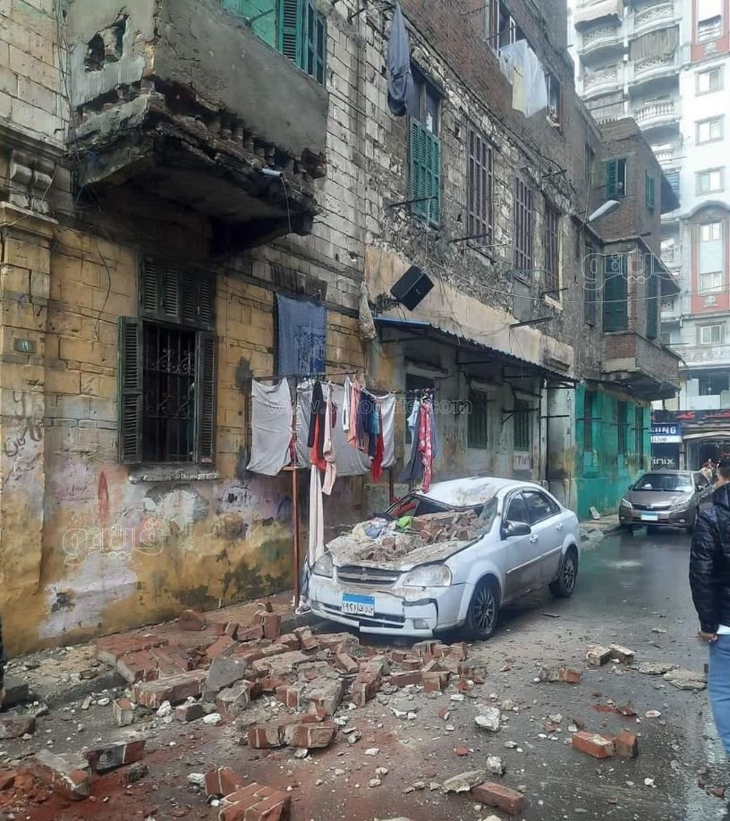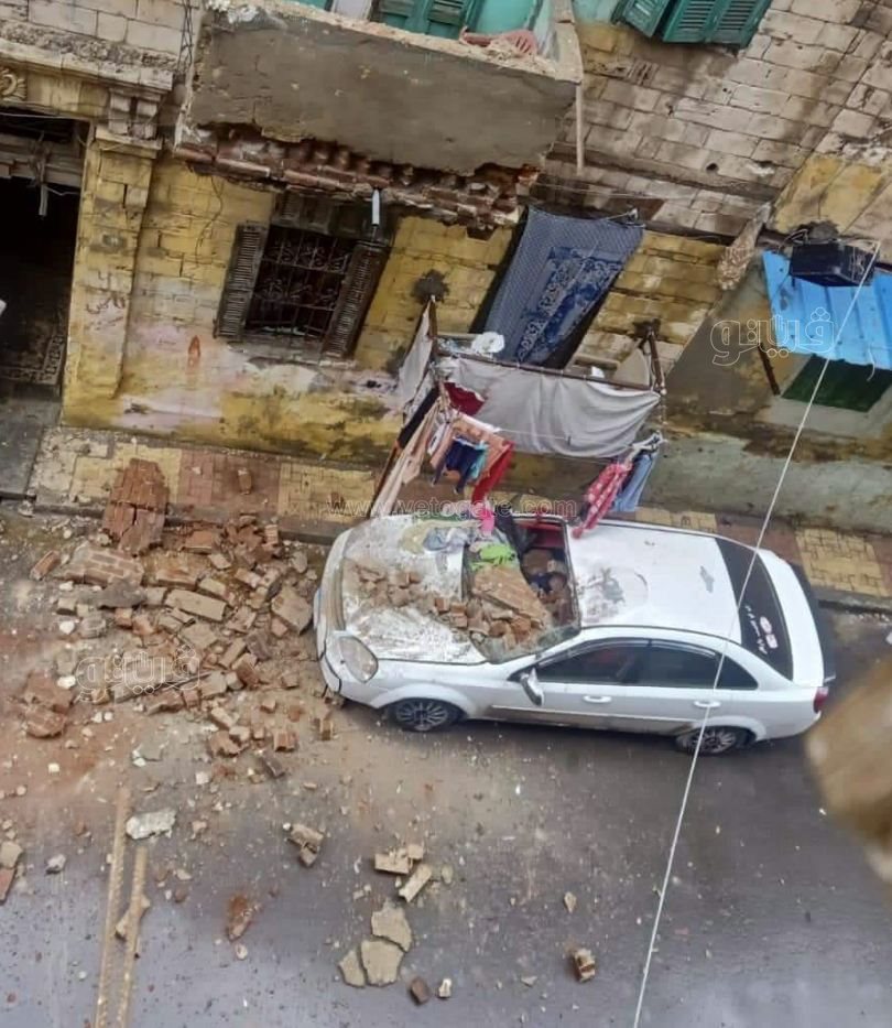 سقوط شرفة عقار على سيارة نجل المطرب أحمد شيبة
