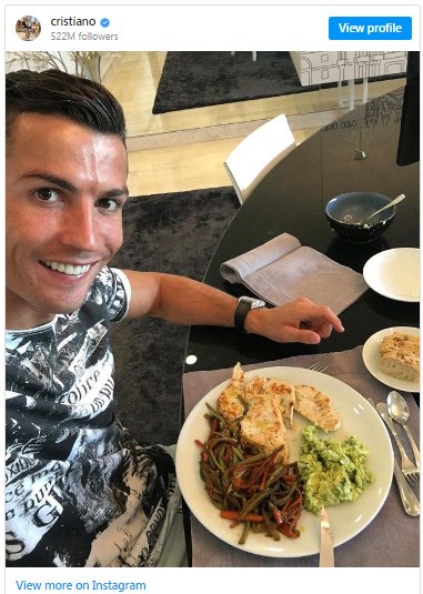 وكان كريستيانو رونالدو قد نشر الصورة الأصلية عبر حسابه الرسمي على إنستجرام، في العام 2016، وكتب معلقا علي الصورة Time to eat.