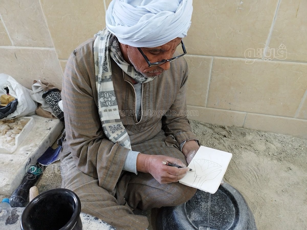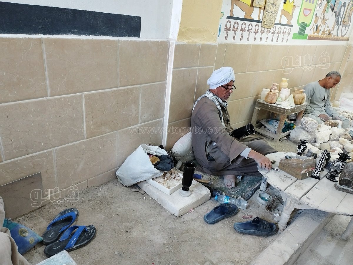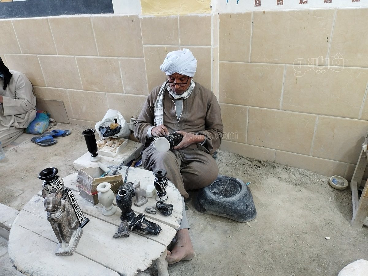 “فيتو” التقت العم همام حمزة ستيني العمر الذي لا يزال يعمل جالسا على الأرض يصنع التحف الفنية للسائحين.