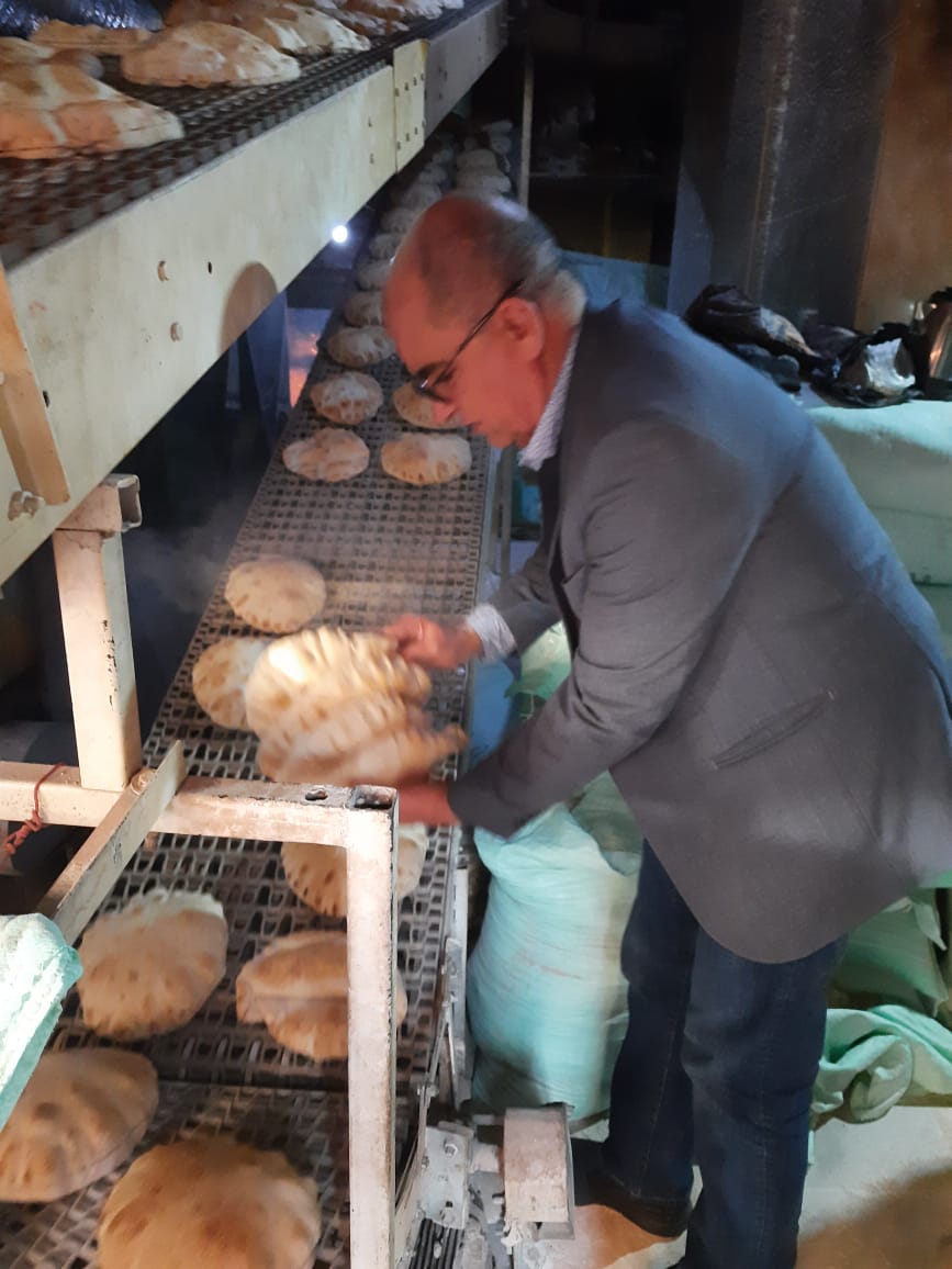 كما تم التأكد من انتظام عمل المخابز بكامل طاقاتها وتوافر الخبز المعروض للمواطنين.