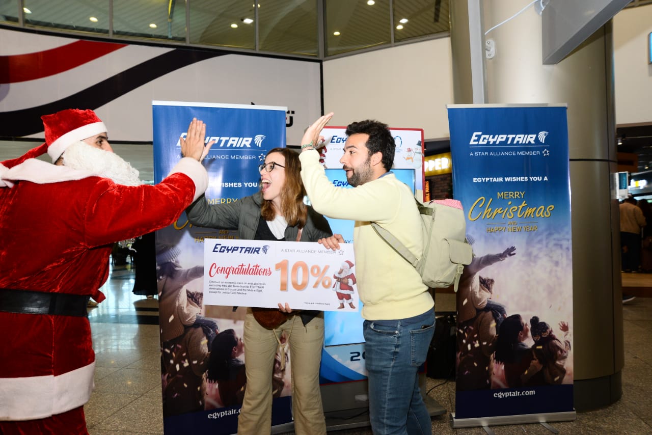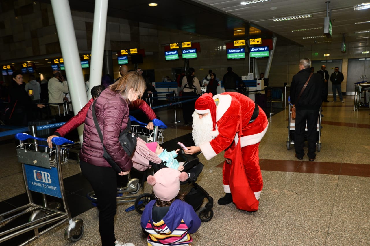كما قامت شركة مصر للطيران للأسواق الحرة بتقديم هدايا تذكارية للمسافرين بمبنى الركاب ٣،٢ بالمطار وحرصت على التقاط الصور التذكارية مع المسافرين وسانتا كلوز.