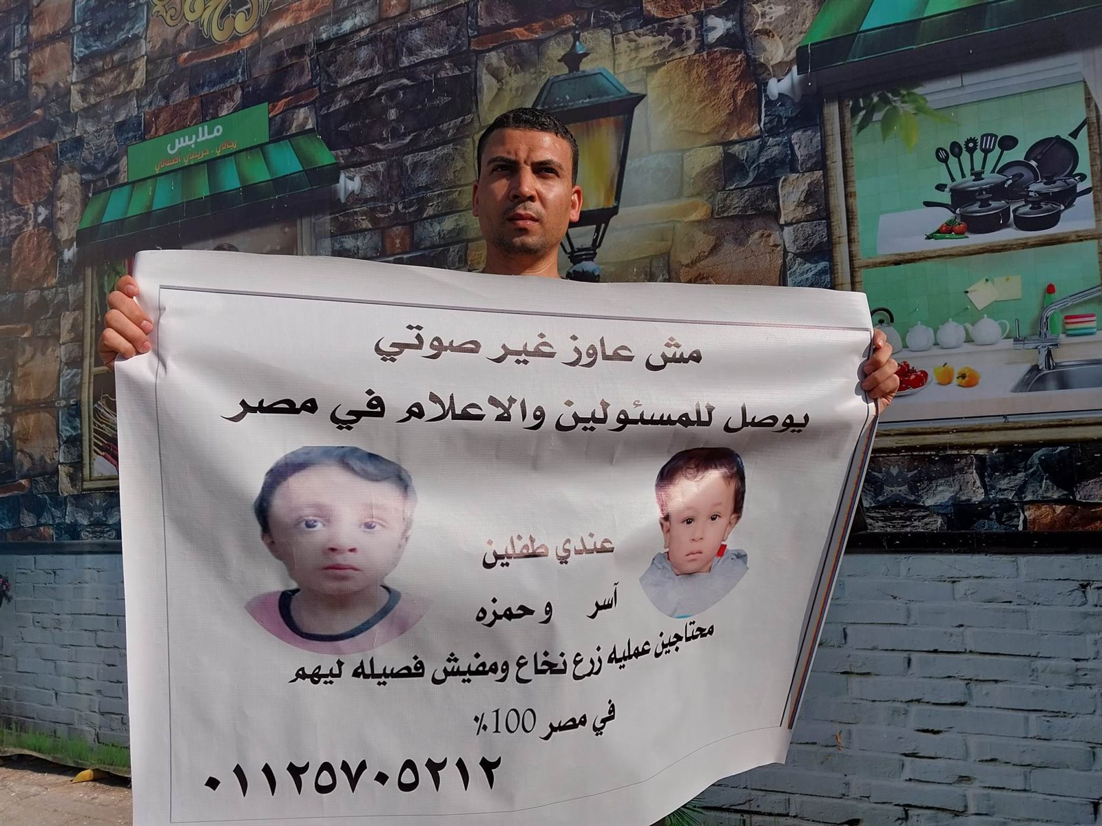 شاب سوهاجي يستغيث بالسيسي لعلاج طفليه، والصحة ترد (فيديو وصور)