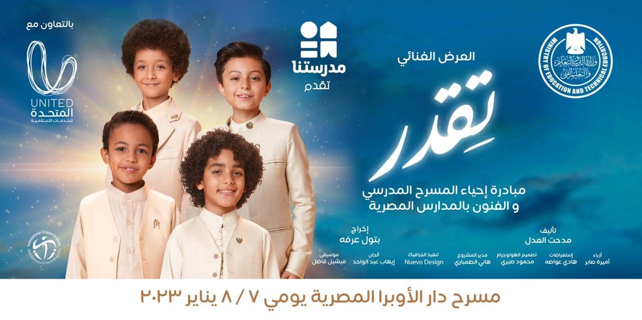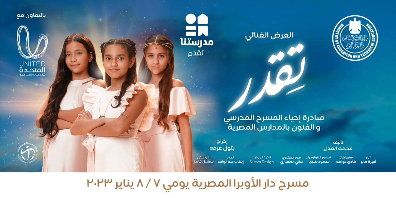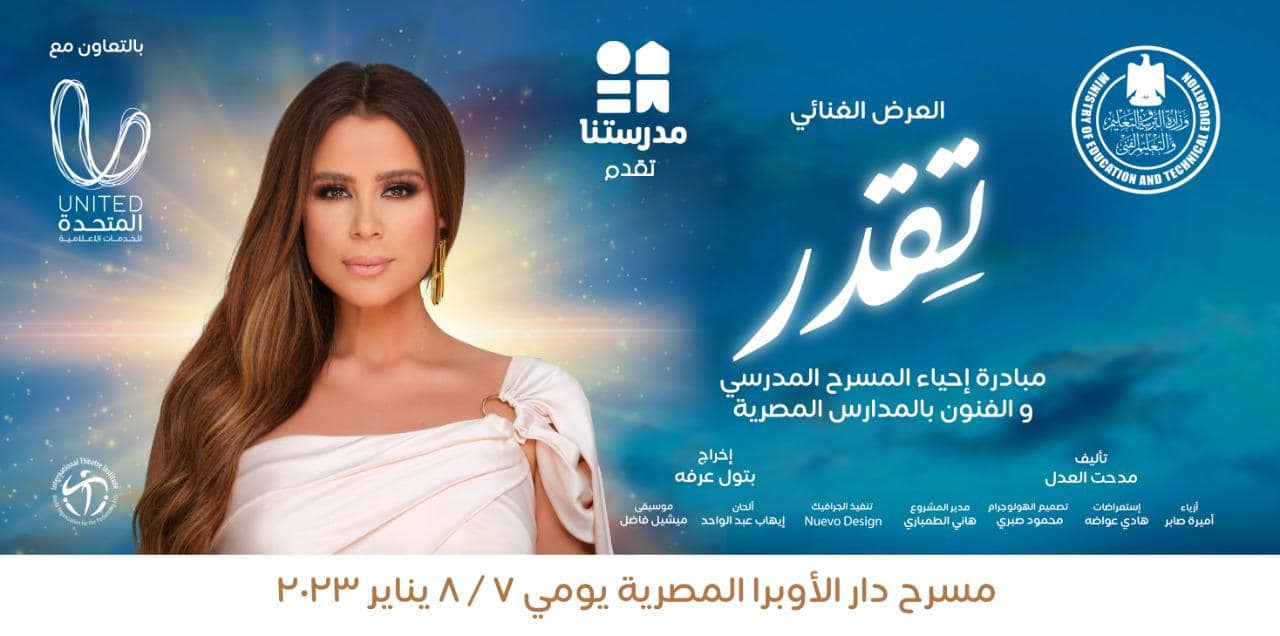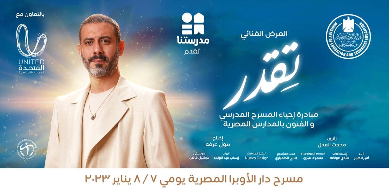 عرض "تقدر" من تأليف مدحت العدل، وإخرج بتول عرفة، والعروض الموسيقية من ألحان إيهاب عبد الواحد وموسيقى ميشيل فاضل، و يأتي ذلك العرض في إطار مبادرة (إحياء المسرح المدرسي) التي تطلقها وزارة التربية والتعليم بالتعاون مع قنوات مدرستنا، وبرعاية الشركة المتحدة للخدمات الإعلامية.