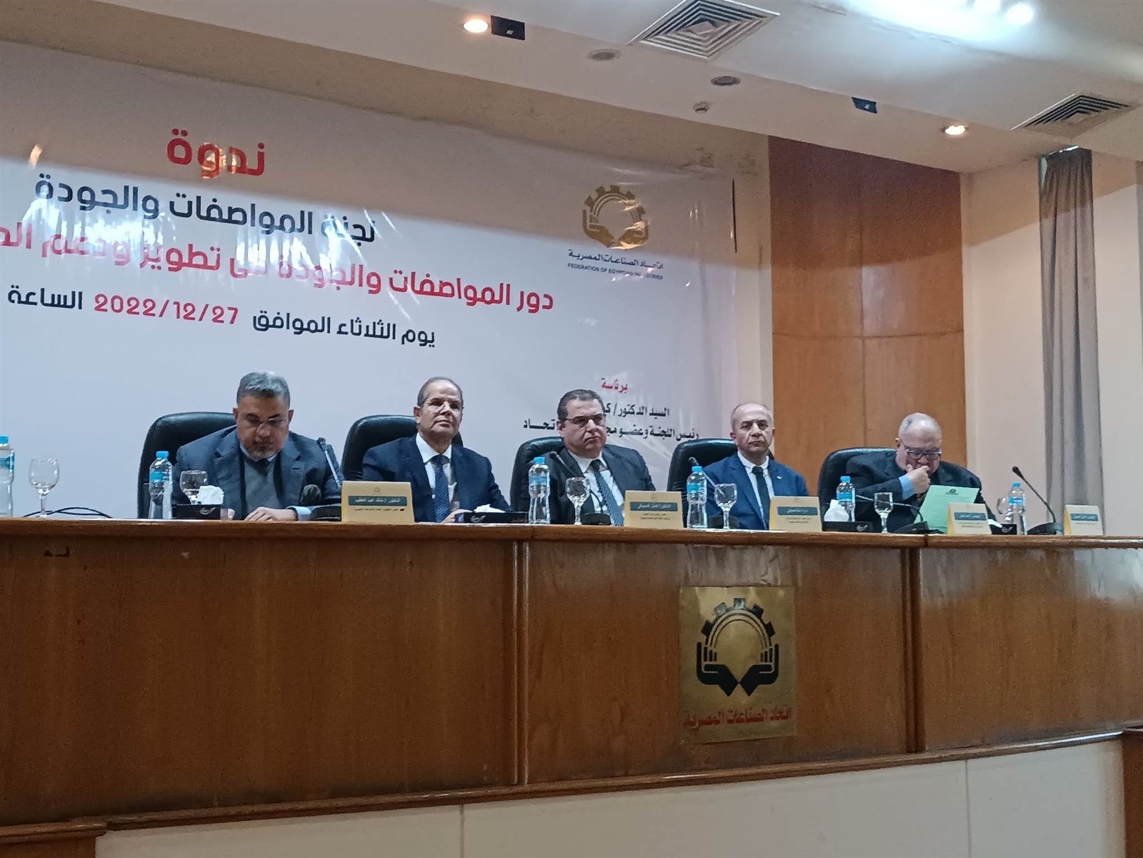 جاء ذلك خلال مشاركته فى اجتماع لجنة المواصفات والجودة باتحاد الصناعات المصرية برئاسة د. كمال الدسوقى وذلك بالشراكة مع الهيئة المصرية العامة للمواصفات والجودة اليوم الثلاثاء تحت عنوان “ دور المواصفات والجودة في تطوير ودعم الصناعة المصرية بحضور الدكتور خالد الصوفي رئيس الهيئة ود. خالد عبد العظيم المدير التنفيذى لاتحاد الصناعات والمهندس أحمد كمال المدير التنفيذى لمكتب الالتزام البيئي والتنمية المستدامة – اتحاد الصناعات المصرية، وهانئ الدسوقى الرئيس التنفيذي للمجلس الوطني للاعتماد”
