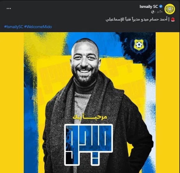 وأخيرا ومنذ ساعات، أعلن يحيى الكومي رئيس النادي الإسماعيلي عن تولي أحمد حسام ميدو مهمة القيادة الفنية للدراويش خلال الفترة المقبلة.