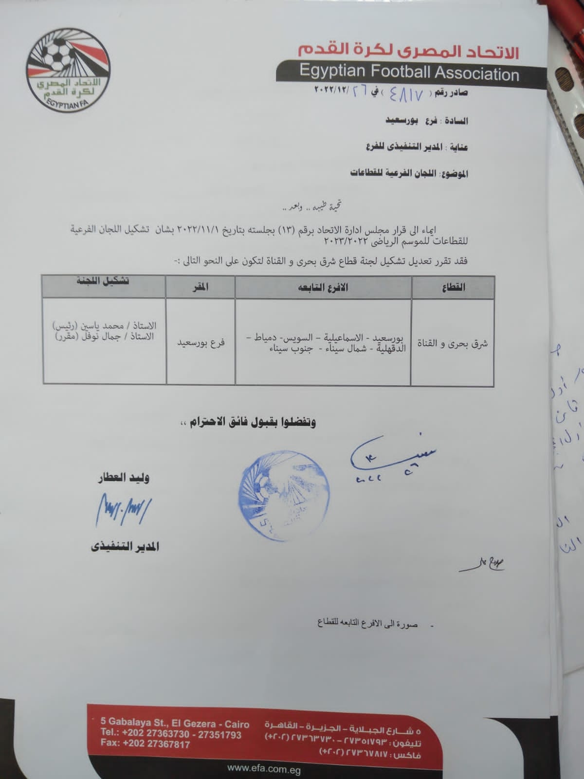 وأعلن مجلس إدارة اتحاد الكرة اختيار محمد ياسين رئيسا وجمال نوفل مقررا للجنة قطاع شرق بحري والقناة.