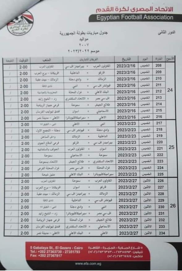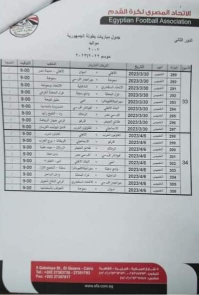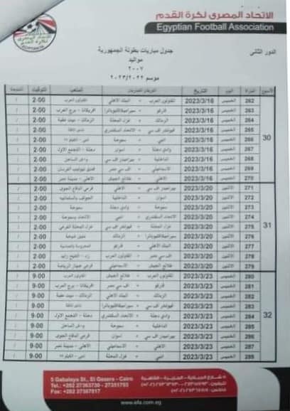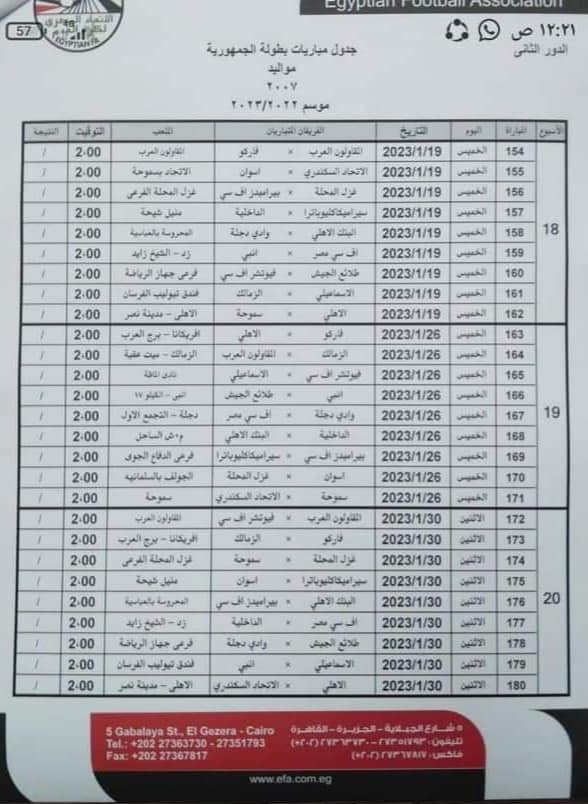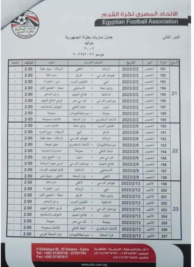 دوري الجمهورية للناشئين، أعلن اتحاد الكرة جدول مباريات الدور الثاني لمسابقة دوري الجمهورية للناشئين لكرة القدم مواليد 2007 بمشاركة 18 فريقا.