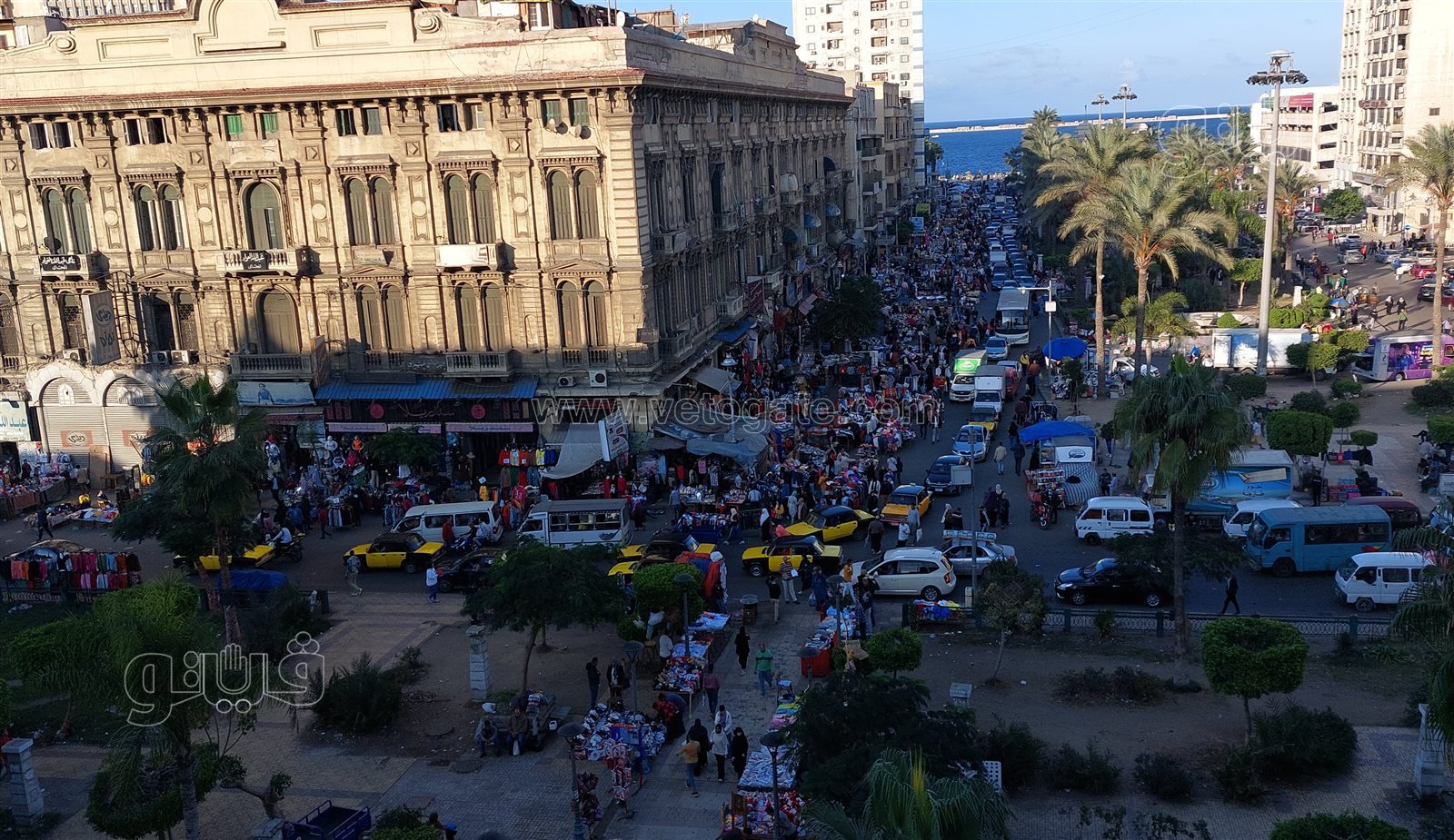 فوضى في ميدان المنشية بالإسكندرية بسبب الباعة الجائلين| فيديو وصور