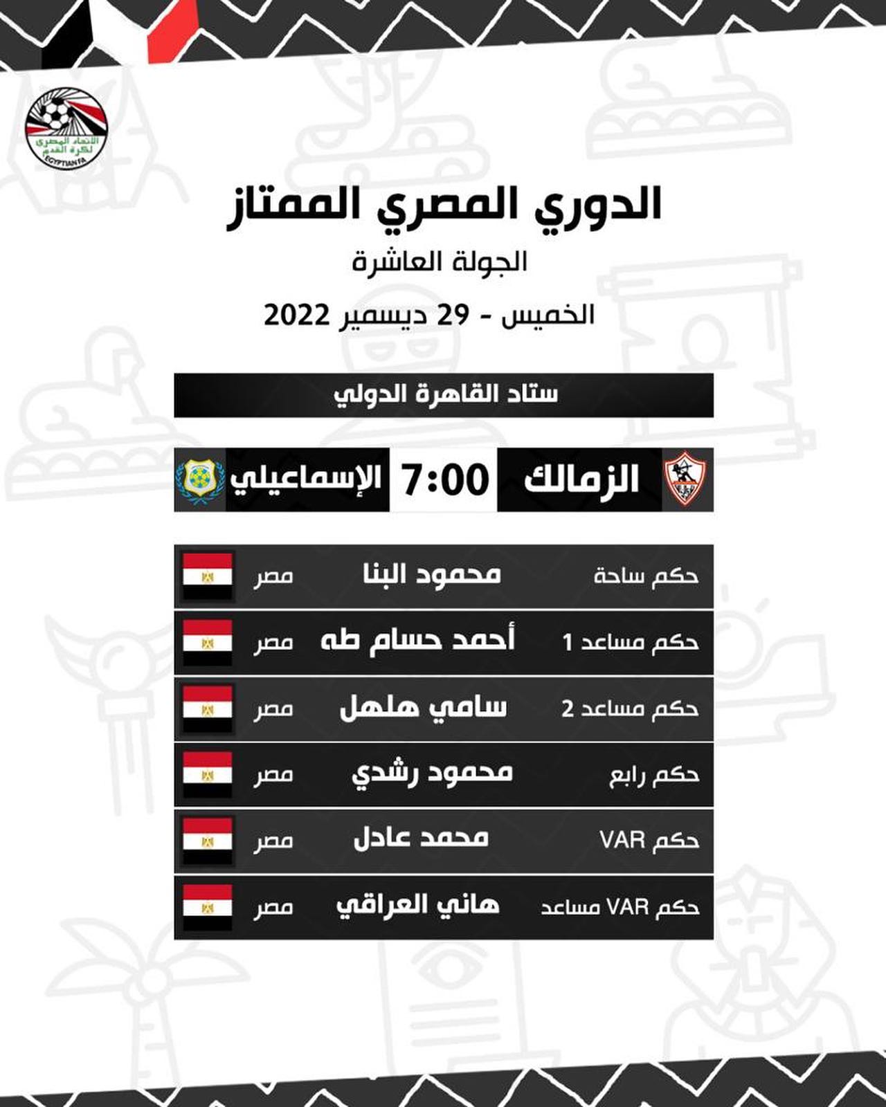 الدوري الممتاز، البنا حكما للزمالك والإسماعيلي ومجدي للمصري وأسوان