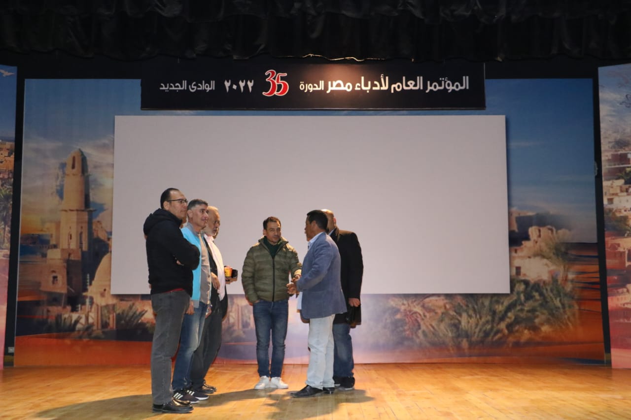مؤتمر أدباء مصر، تفقد المخرج هشام عطوة رئيس الهيئة العامة لقصور الثقافة البروفة الأخيرة لحفل افتتاح مؤتمر أدباء مصر في دورته الخامسة والثلاثين، والذي يقام غدا الخميس على مسرح وسينما هيبس بمحافظة الوادي الجديد.