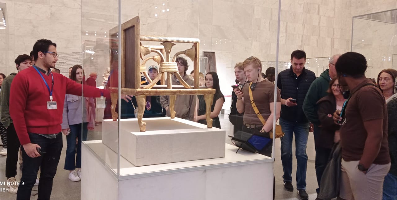 وأوضح لهم الدكتور أحمد غنيم دور المتحف كقبلة لكثير من الشخصيات العامة وزيارات الوفود الرسمية من عشاق الحضارة المصرية القديمة، خلال تواجدهم في مصر، مما جعله واجهة ثقافية، ودلالة على شغفهم بمعالم هذه الحضارة وارثها الثقافي.