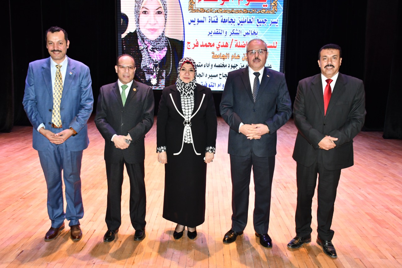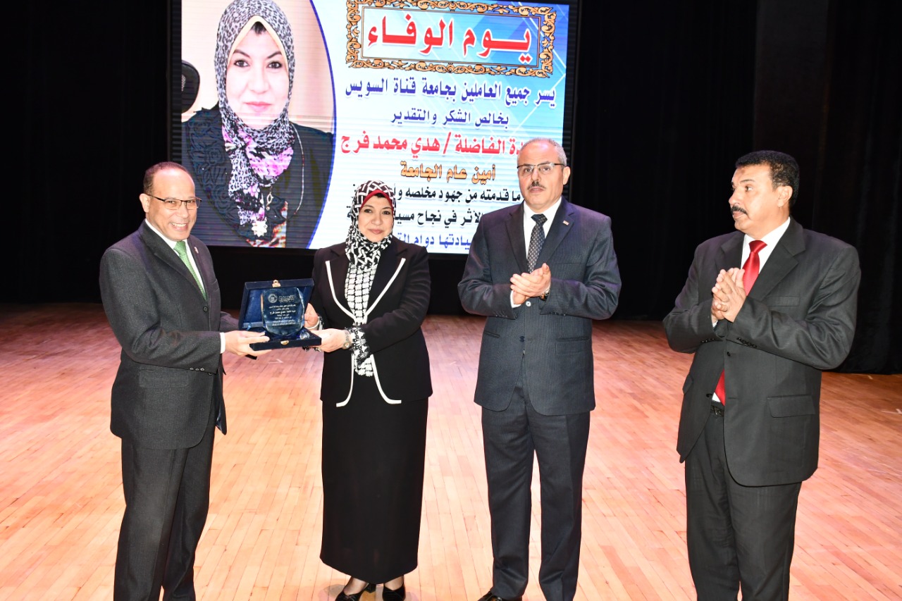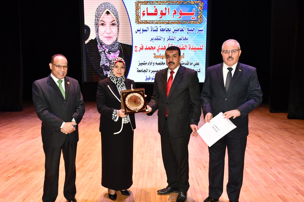 رئيس جامعة قناة السويس يُكرم "هدى فرج" لمجهوداتها في خدمة الجامعة (صور)