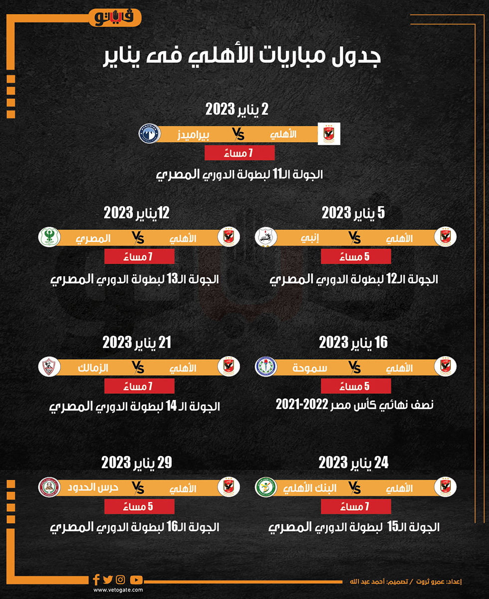 جدول مباريات الأهلي فى يناير (إنفوجراف)