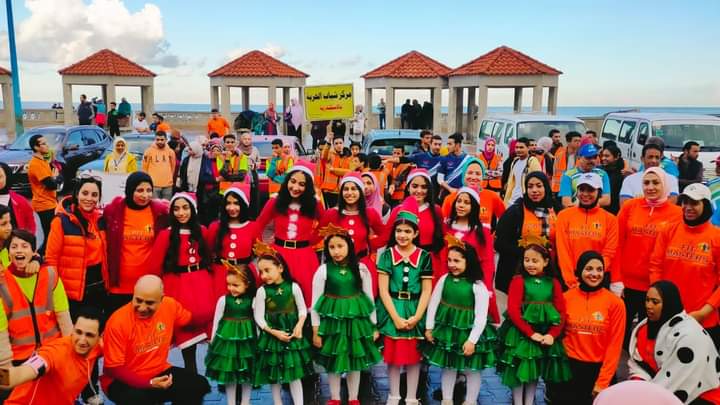 وحرصت البراعم من الأطفال على ارتداء ملابس بابا نويل وذلك للاحتفال بقدوم العام الجديد وتنظيم عروض رياضية مختلفة ولجذب اهالى المنطقة من كافة الاعمار وحثهم على ممارسة الرياضة ويبدون عامهم الجديد بالرياضه وجعلها أسلوب حياة الأمر الذي يؤدي توسيع قاعدة الممارسين للرياضة بوجه عام .