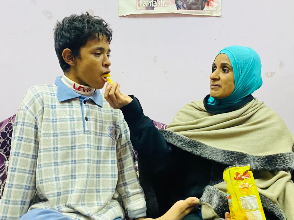 شاب عمره 19 سنة بعقل طفل 3 سنوات.. أسرة عمرو تستنجد بوزير الصحة ومحافظ المنيا (صور)