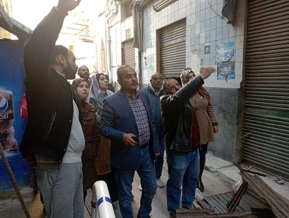 وفور ورود بلاغات تفيد بسقوط أجزاء من العقارين ١٣،١١ مشمس البصل توجه على الفور اللواء وليد البيلي رئيس حي الجمرك والمهندسة وفاء زايد سكرتير عام الحي للمكان المذكور بوجود الإدارات المعنية بالحي .