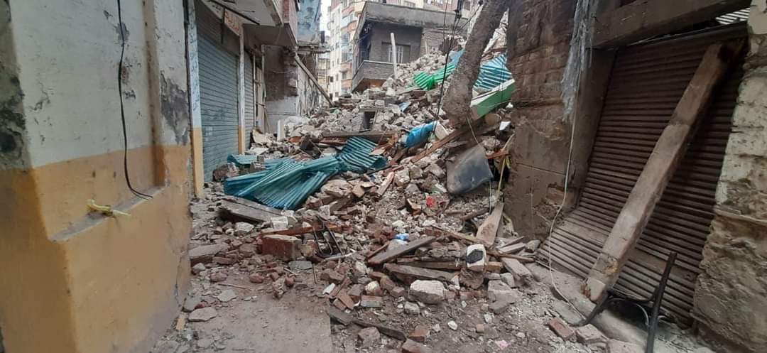وتبين أنه تم سقوط أجزاء من العقارين خاليين من السكان، دون إصابات ويوجد أجزاء خطر معلقة، وأن العقار رقم ١١ مشمس البصل صادر له قرار هدم كلي رقم ٥٤ لسنة ٢٠١٠، والعقار ١٣ مشمس البصل صادر له قرار هدم كلي رقم ٥٩ لسنة ٢٠١٠.